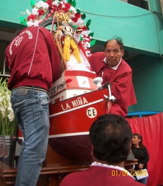 Chimbote en línea (Cuestión de Fe).- Esta tarde inició la fiesta San Pedrito, patrono de Chimbote, con un homenaje por la Capitanía del Puerto y luego la colocación de Santo patrón de los pescadores en su anda por el Capitán Renzo Robisso Oblitas, hermandad y el coordinador de la actividades religiosas, Fray Héctor Herrera o.p., en el Sindicato de Pescadores.
