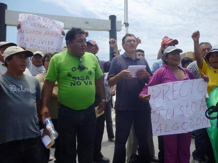 Cerca de 500 agricultores pertenecientes a la Asociación de Algodoneros Productores del Algodón (Ampal) Perú, se dieron cita en el cruce de Santa desde las 9 a.m., para movilizarse hasta el centro de Chimbote y exigir al estado que se pague un precio justo por el quintal de algodón “Tanguis”, perteneciente a la cosecha del 2012, que inicia el 15 de febrero.