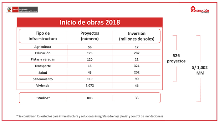 Tras los estudios de prevención, se procedió a definir las unidades ejecutoras (98% de ellas son ministerios y organismos del gobierno central); la que en noviembre evaluaron los expedientes técnicos de las obras incluidas en el plan de RCC. Así se pudo elaborar la programación detallada de inversiones para el 2018.