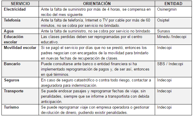 Mientras que, respecto a servicios turísticos, se indican los procedimientos que deberán realizar aquellas personas que cuenten con reservas de paquetes turísticos y que no pudieron utilizarlos, debido a la situación de emergencia.
