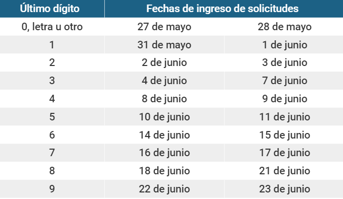 Como ya ha sucedido en retiros anteriores de las AFP, en esta oportunidad también se ha establecido un cronograma de fechas, en el que los afiliados podrán presentar su solicitud: