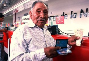 Unos 25 beneficiarios del programa estatal Pensión 65 en el distrito de Nuevo Chimbote, cobraron la mañana de ayer el bono de S/. 250.00 que aporta el Estado, correspondiente a los meses de setiembre y octubre.
