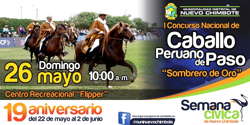 El domingo 26, será un día especial con la realización del I Concurso Nacional del Caballo Peruano de Paso, en donde los ejemplares más finos de la región deleitaran a los asistentes con la representativa marinera norteña, en el centro recreacional Flipper.