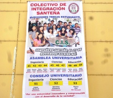 apoya la elección del actual vicerrector Académico, Víctor Castro Zavaleta, la UNES Vanguardia Estudiantil que apoyaría al vicerrector Administrativo, Damián Manayay y el CIS, Colectivo de Integración Santeña que apoya la elección del Ingeniero Sixto Díaz, actual Decano de la Facultad de Ingeniería.