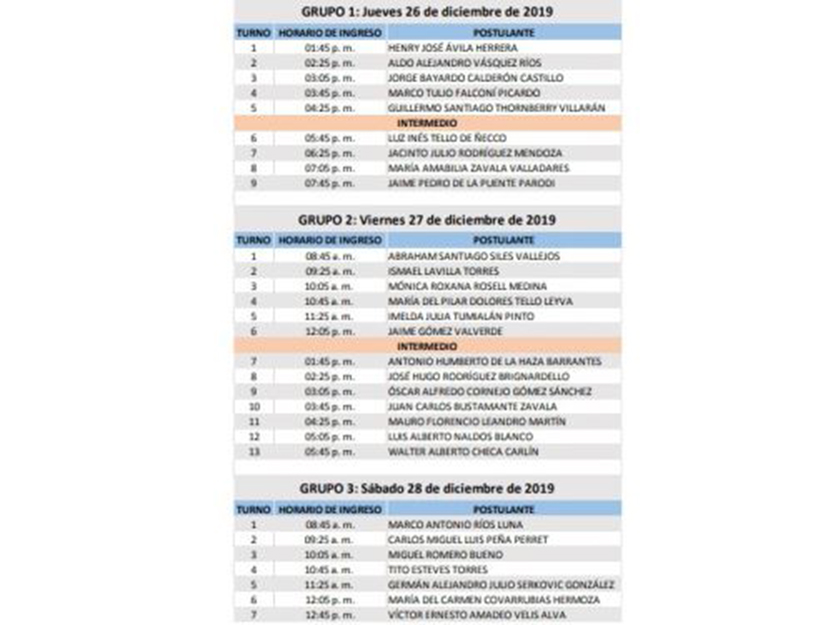 Según el cronograma, las entrevistas se desarrollarán del jueves 26 de diciembre al sábado 28 en el horario indicado (hora exacta).