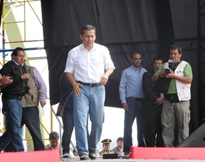 Chimbotenlinea.com (Por: Lindberg Cruzado).-El presidente de la República, Ollanta Humala Tasso, en su visita esta tarde a Chimbote, anunció que convocará a una reunión a los alcaldes distritales y provinciales de Ancash para que se evalúe la redistribución interna del canon minero para disminuir la pobreza extrema.(Foto: Lindberg Cruzado)